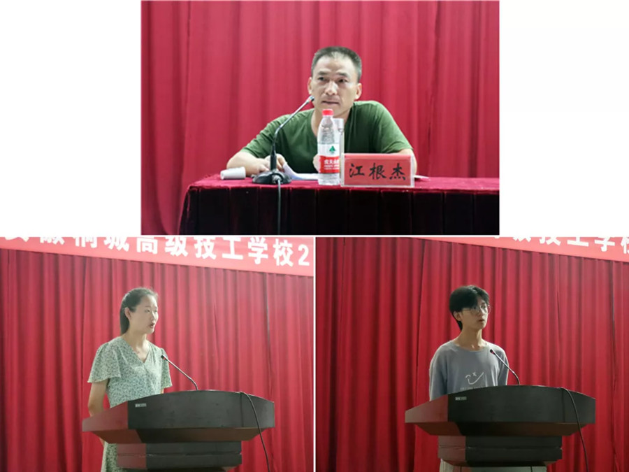 会上,校学生处主任江根杰布置入学教育相关活动安排。2021级新生班主任代表都珊珊老师,新生代表21春招电子商务班查达云同学分别发言。