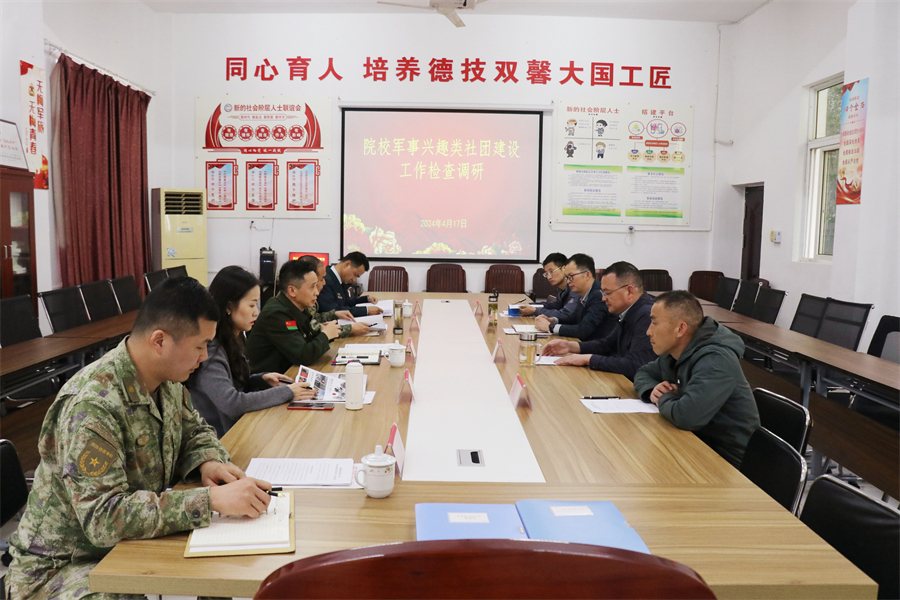 4月17日,安庆市征兵办副主任、军分区动员处处长胡小龙一行来桐城高级技工学校调研军事兴趣类社团建设工作,桐城市委常委、市人武部政委任关兴,及市人社局副局长章文斌陪同,桐城高级技工学校校长郭昌盛,校长助理、教学管理部部长孙开运,学生处主任江根杰等参加调研并汇报情况。座谈会上,校学生处主任、校军事兴趣类社团