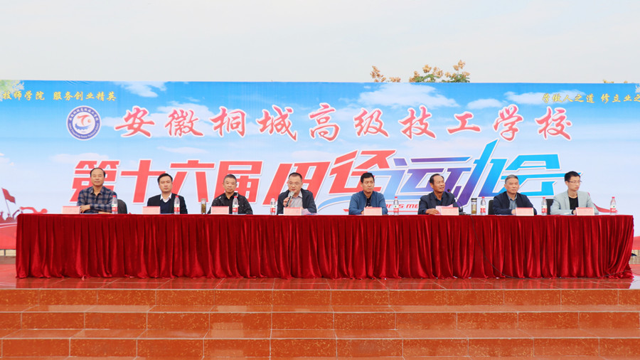金秋送爽,丹桂飘香。安徽桐城高级技工学校大操场彩旗飘扬、人声鼎沸,汇聚成一片欢乐的海洋。全体师生齐聚一堂,隆重举行第十六届田径运动会。桐城市职业技能鉴定中心主任杨林光,桐城高级技工学校校长郭昌盛,副校长方正明、姚笃超,校长助理陈中奇、方涌、孙开运、吴青山等出席开幕式。