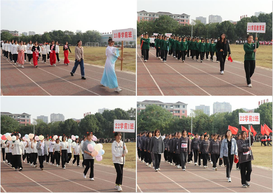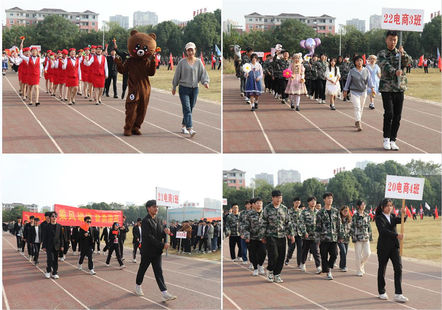 开幕式上,田径场内,红旗摇曳、彩旗飞扬,展现出一片欢腾的景象。伴着激扬的旋律,国旗方阵、校旗方阵、彩旗方阵、裁判员方阵迈着整齐的步伐,精彩亮相。来自全校各专业的38支代表队共300多名运动员,高喊着嘹亮的口号,激情入场。
