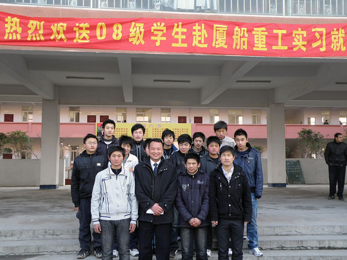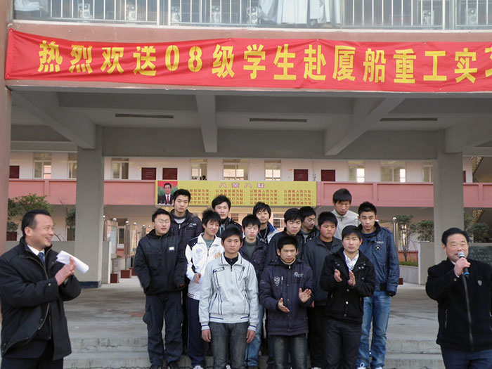 厦门船舶重工股份有限公司,是国家大型企业,在国际造船业也享有很高的声誉,我校与该公司是长期合作伙伴,前期在该公司工作的我校胡马建等同学已成为该企业的技术骨干,希望你们进入工作岗位后,要严格遵守企业的各项规章制度,服从领导,团结工友,勤奋工作,为学校增光,以优异的工作业绩回报社会,报答父母的养育之恩。