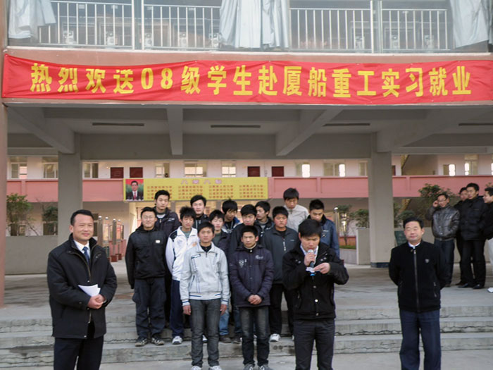3月9号下午,桐城海峡技工学校全体教职工和在校学生近千人举行隆重的欢送仪式,为即将赴厦门船舶重工集团就业的学生送行,这是我校08级学生就业的开始,厦门船舶重工集团是国家大型企业,在国际造船业享有很高的声誉。我校与该企业已建立长期合作关系,自2008年起每年都向该企业输送技工人才,先期在该企业工作的我校学生不少已成为该企业的技术骨干。