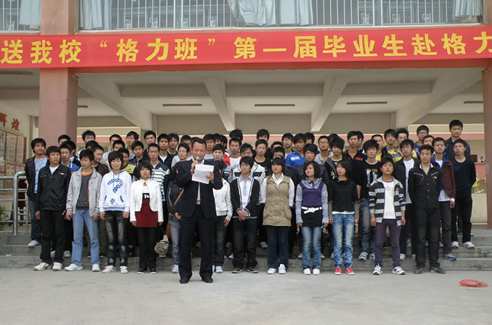 校董事长郭黄胜十分重视、关心学生分配工作,亲自为学生送行。在4月29日首届“格力班”毕业生欢送仪式上,他代表学校满怀深情地期待毕业离校的学子们,一定要牢记桐城技工学校校训“学做人之道、修立业之本”,把在学校学习的知识很好的发挥,运用到今后的实际工作当中,实实在在的干事,在市场经济建设的主战场上,大显身手,建功立业,为学校增光添彩。他还语重心长地要求学生们走上社会后一定要十分珍惜每一次机遇,迈好人生每一步,把握人生的坐标,端正生命之舟的航向,经得起各种考验,做到既成才又成人,不迷惑不彷徨,直至成功,学校、家乡人在期待着你们传来成功就业、努力创业的好消息。