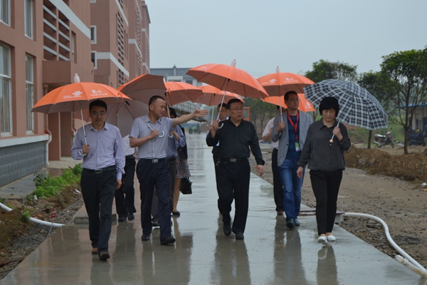 上午9时,马玉荣一行冒着大雨来到桐城技工学校,在学校相关负责同志的陪同下参观了一期校园、二期工地的建设情况。
