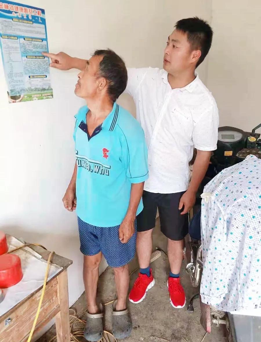 接着他给我们讲了工作中几个有趣的小故事:全村涉脱贫攻坚贫困户共有74家,王勇自己负责26家。有些老人身体有点小毛病,心里有啥不愉快,不愿意跟自己儿女倾诉,偏要缠着王勇吐苦水,他们说自己的儿女还没有王勇十分之一好。有一个老人身体不舒服了,一个电话打过来,说要送他去医院,到了医院还要王勇背他上楼挂号拿药、办理住院手续;过几天,身体恢复健康了,再一个电话打过来,要王勇接他回家。王勇说,有时感觉这些老人就像孩子一样淘气。时间处长了,真的成了一家人了。虽说王勇很忙,但这些看似不足挂齿的小事,其实都是村民更是王勇挂念的大事,所以也就乐在其中。