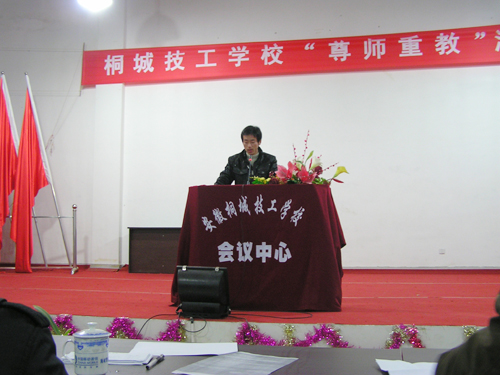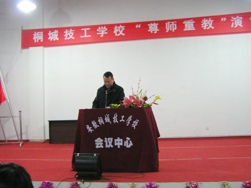 为进一步弘扬中华民族“尊师、重教”传统美德。桐城技工学校于12月24日下午在学校二楼礼堂举行了全体教职工及学生代表参加的以“尊师、重教”为主题的演讲比赛。学校邀请了市劳动局领导做评委,全体教职工做大众评委,全校学生做听众的一次大型演讲比赛。
