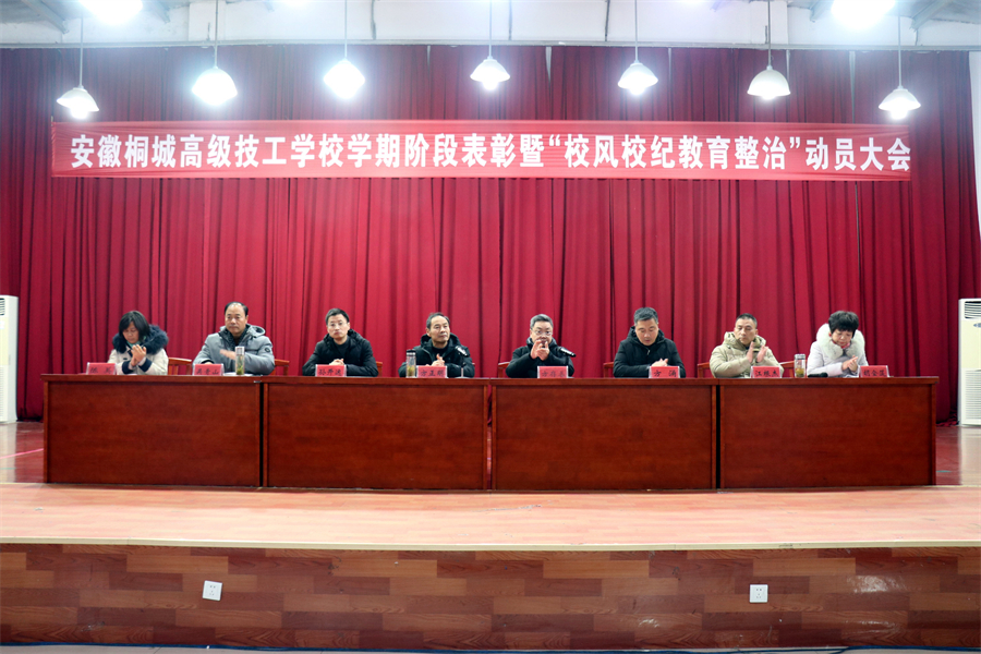 为全面贯彻落实“立德树人”根本任务,进一步规范学校管理,真正实现“为党育人、为国育才”,桐城高级技工学校开展校风校纪教育整治活动。12月13日,桐城高级技工学校在校大礼堂,召开学期阶段表彰暨“校风校纪教育整治”动员大会,副校长方正明及校领导班子全体成员,22级和23级全体师生参加大会,动员大会由学校党建指导员方存善主持。