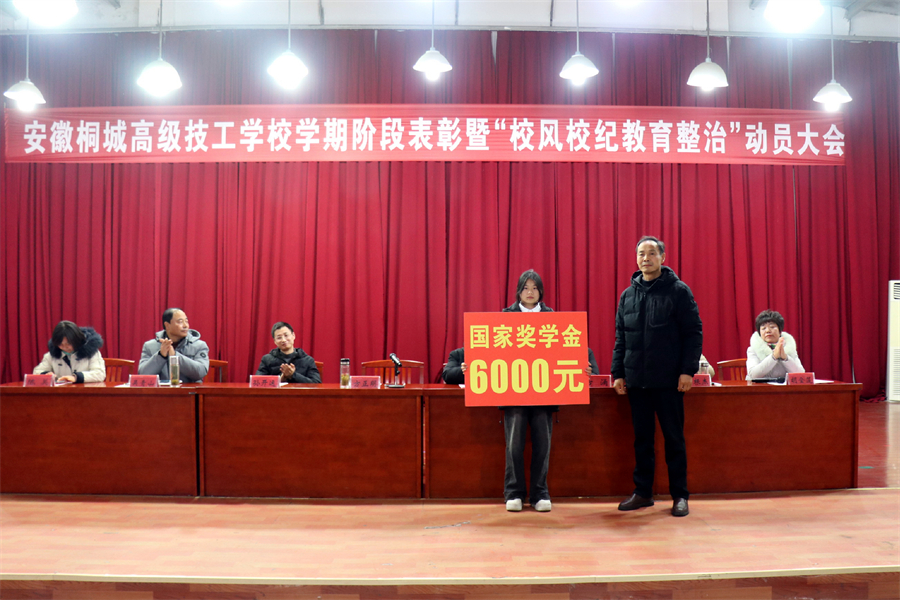 随后,校长助理、校学生管理部部长方涌宣读《桐城高级技工学校校纪校风教育整治活动实施方案》;校政教处胡金莲宣读我校国家助学金获得者及安庆市级、桐城市级“三好学生”、“优秀学生干部”,技能竞赛获奖者、“工学交替”先进个人名单,现场对获奖同学进行了表彰奖励。