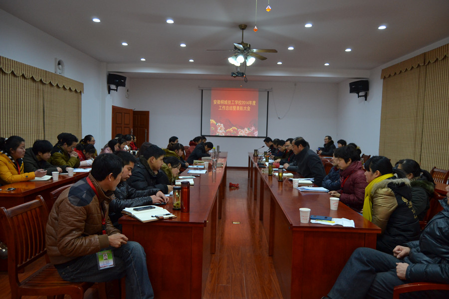 2014年2月6日,桐城技工学校2014年度工作总结暨表彰大会在学校礼堂会议室隆重举行。大会开始,各部门领导向参加大会的全校教职员工进行了“2014年度工作总结报告”。同时介绍各部门一年来所取得的成绩与不足,同时表示新一年里要再接再厉。