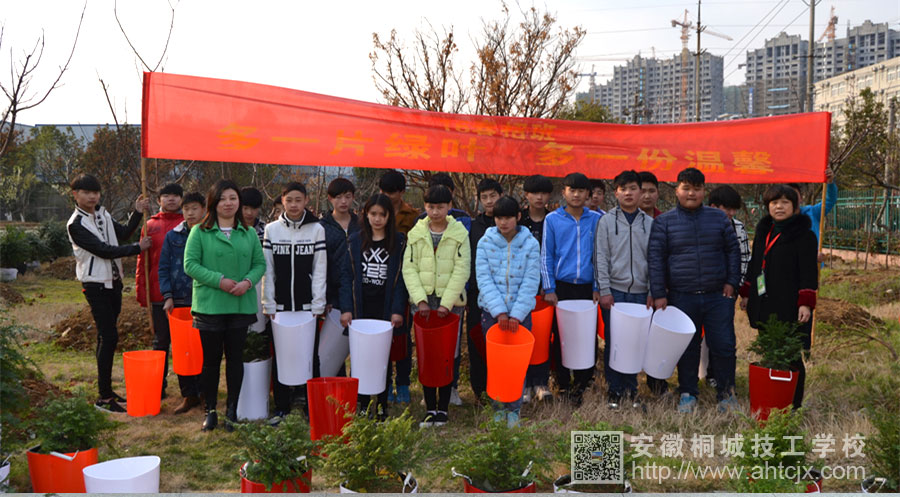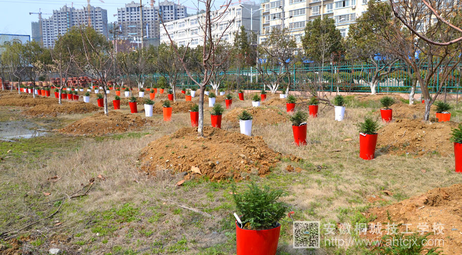 在植树节来临之际,安徽桐城技工学校的师生在校园内开展植树、种花活动,师生们共植700多棵红豆杉等名贵绿化花木。