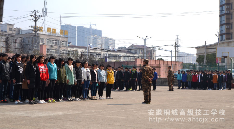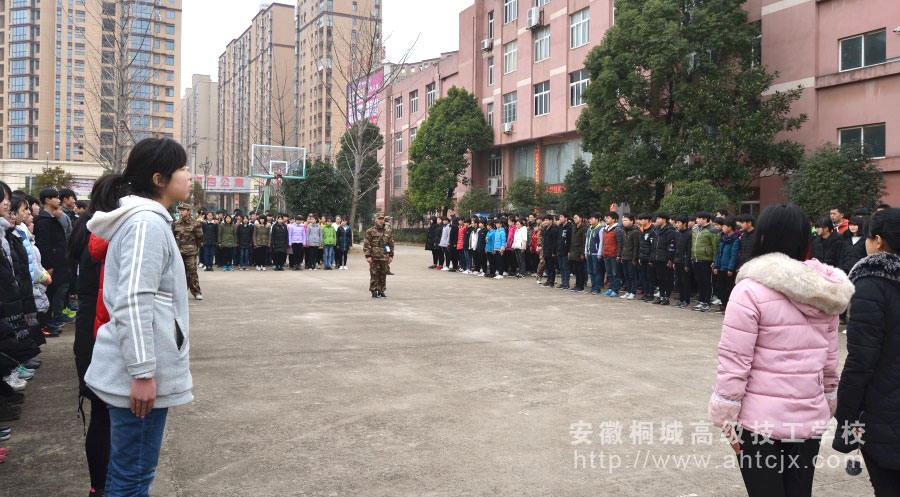 为了规范学校的管理制度,促进青少年教育事业的快速发展,建立正规的学习、训练、工作和生活秩序,本学期安徽桐城高级技工学校在继续实行全封闭住宿管理的基础上,引入军事化管理模式,开展“军营生活一日制”,从列队出操、列队上课、饭前一支歌以及晚上的军事训练等,所有教官全天跟踪学生,以军号或哨声为令,保证学生按时熄灯睡觉,按时上课;内务上,从床上被褥的折叠,到洗漱用品的摆放都有明确要求;学校各种活动集会以军人为标准,要求动作迅速、步伐一致。将准军事化管理融入学校德育工作中,改善学生学习状态和精神面貌,形成良好的学风、班风、校风,家长反映也很好。