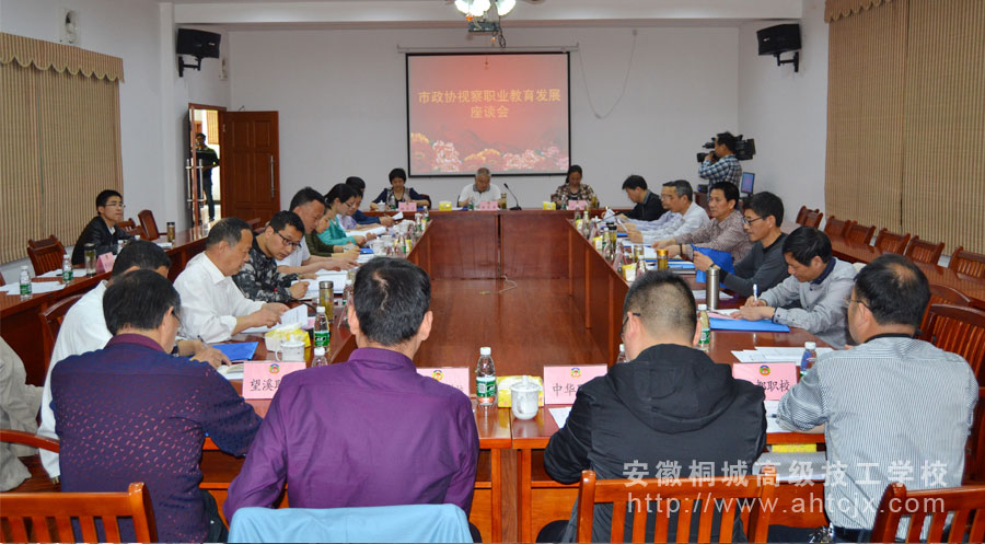 4月20日上午,市政协视察职业教育发展座谈会在安徽桐城高级技工学校召开。市政协主席徐家涛、副主席汪艾东、秘书长姚芬兰出席座谈会。市政协教科文卫体委全体委员,市委组织部副部长、市人社局局长吴绳武,市教育局副局长胡长胜,桐城高级技工学校、望溪职校、中华职校、文都职校负责同志参加座谈会。