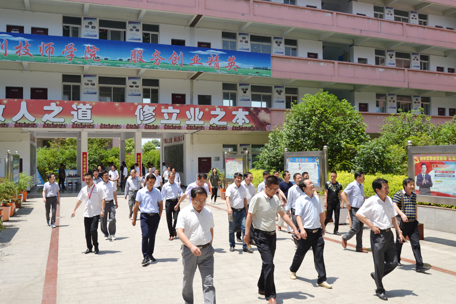 郭校长带领全市各初、高中校长,毕业班班主任老师参观学校机械专业实训中心
