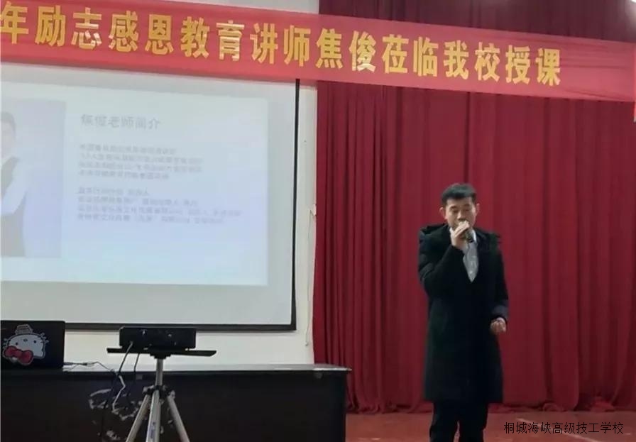 2017年12月21日至22日,北京商鲲教育集团感恩教育专家焦俊一行,受邀来桐城高级技工学校为学生讲授感恩教育课,我校高铁专业全体学生参加了此次活动。此次感恩教育活动内容丰富,为期两整天和一个晚自习时间,学校方正明副校长为课程开幕致辞。