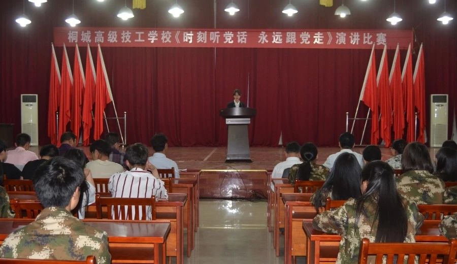 4月11日下午,安徽桐城高级技工学校全体同学齐聚校二楼会议厅,举行“时刻听党话,永远跟党走”爱国主义演讲比赛。紧张而激烈的演讲比赛,历经两个多小时圆满结束。