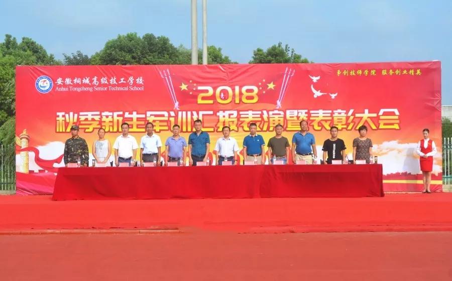 8月28日上午,安徽桐城高级技工学校2018级新生军训汇报表演暨表彰大会,在技工学校大操场隆重举行。桐城高级技工学校校长郭昌盛,军训总教官李繁龙及全体教官,学校各部门负责人及全体员工参加大会。市人社局副局长孙朝阳,人社局领导班子成员姚笃超,市技能鉴定中心主任王彪应邀出席。大会由学校副校长方正明主持。