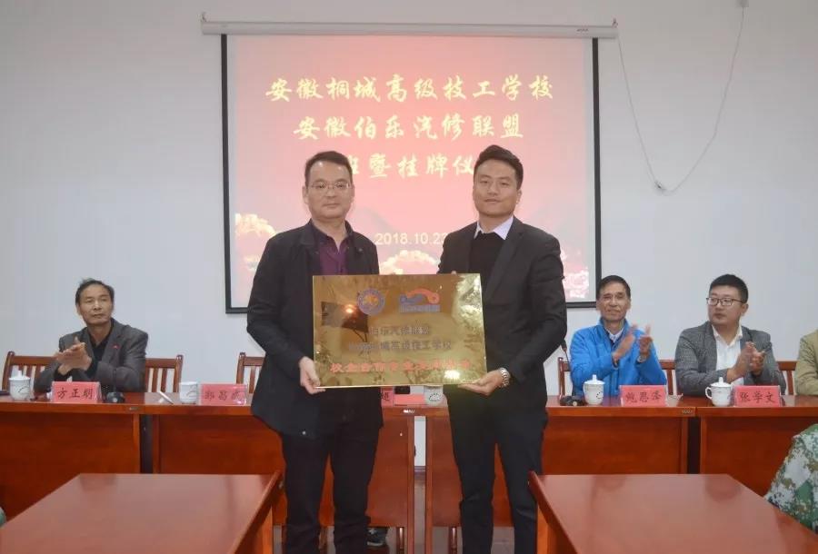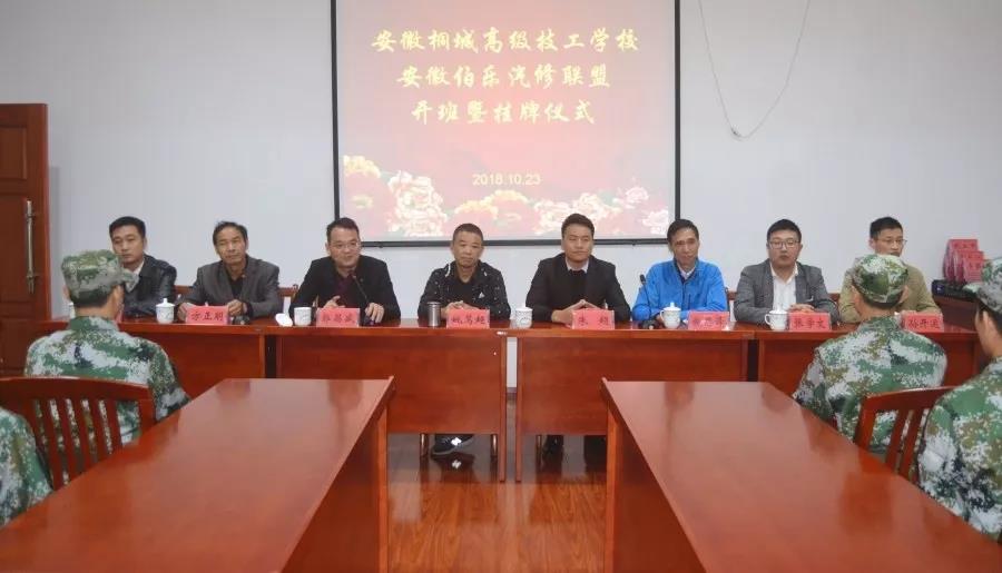 2018年10月23日上午,安徽桐城高级技工学校与伯乐汽修联盟,联合举行校企合作新能源汽车班开班暨授牌仪式。桐城市人社局领导班子成员姚笃超,桐城高级技工学校校长郭昌盛,伯乐汽修联盟集团董事长朱超,伯乐商学院院长鲍思泽等出席开班仪式。我校18级新能源汽车专业全体学生及专业课教师参加开班式。仪式由桐城高级技工学校常务副校长方正明主持。
