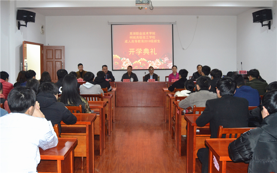 2月16日,安徽桐城高级技工学校成人高等教育2018级新生开学典礼隆重举行。