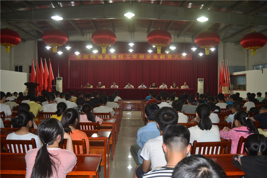 6月8日,桐城高级技工学校在校大礼堂召开全校师生安全教育大会,部署假期学生安全教育工作。