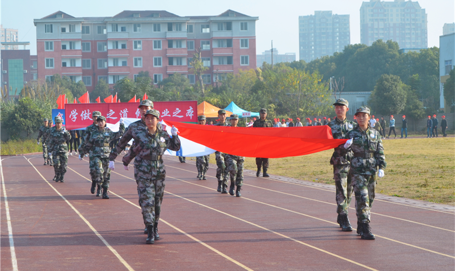 3月23日,桐城高级技工学校新学期军训成果考核顺利进行。