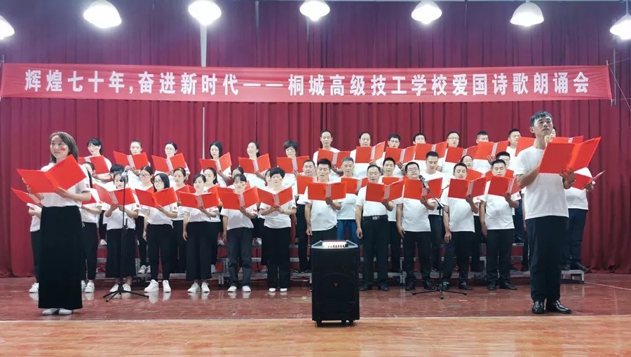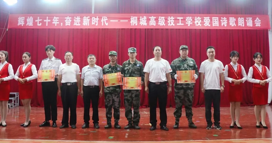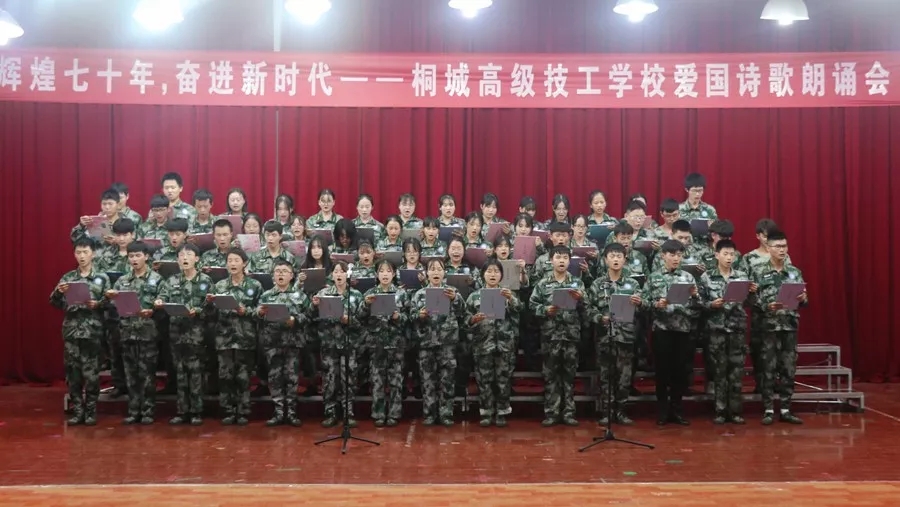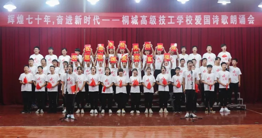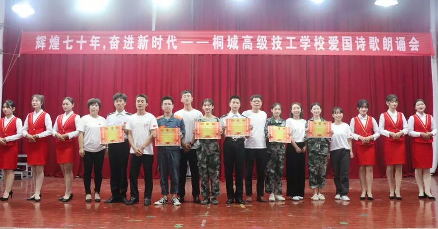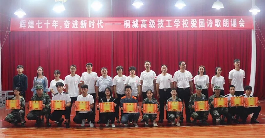 本次“辉煌70年,奋进新时代——桐城高级技工学校爱国诗歌朗诵会”,是桐城高级技工学校“迎国庆”系列活动之一。各班级为取得好成绩进行了大量准备和排练,爱国诗歌朗诵活动的举行,对全体同学进行了一次深刻的爱国主义教育,极大丰富了老师和同学们的校园生活,锻炼了同学们的诵读能力,增强了同学们的集体荣誉感和团结合作精神。