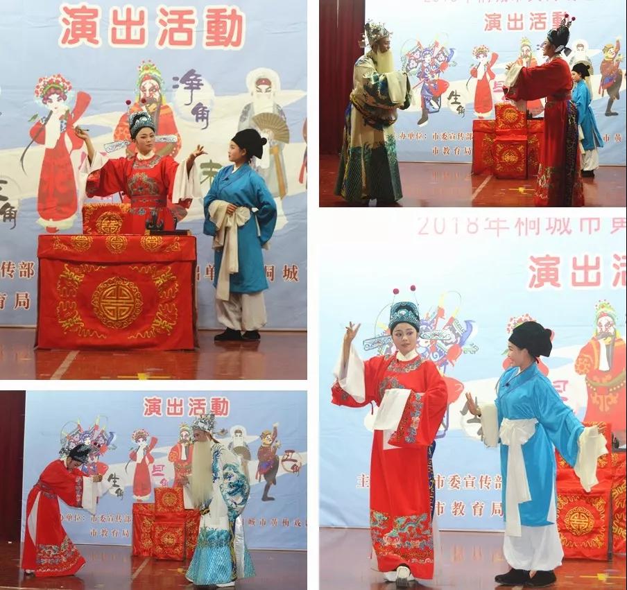 11月5日下午,由市委宣传部、市文化委、教育局、财政局共同主办的“2018年桐城市黄梅戏进校园”演出活动,在安徽桐城高级技工学校大礼堂举行。