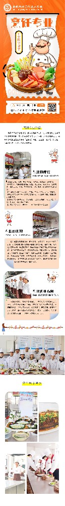 核心课程:烹饪原料、烹饪美学、饮食营养与卫生、热菜制作、面点工艺、厨房部运营与管理、中式烹调师、西式点心制作、食品装饰、宴席组合与菜单设计、徽菜文化等。
