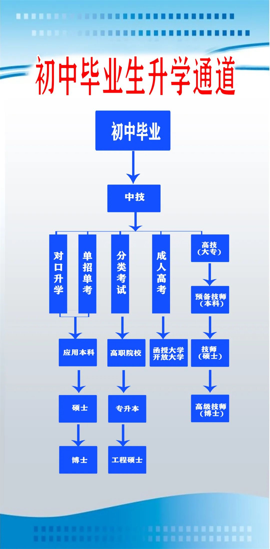 新出台的职业教育法,让职业学校学生考本科上大学更简单更轻松。自2018年以来,中职院校升学比例从原来的10%,到现在的81%,可以说升学已经成了中职生的一种选择。为进一步拓宽育人渠道,桐城高级技工学校开设升学班,学生毕业享有三次高考机会,可参加省内专本科分类招生考、全国统一高考、天职师大对口单招考试,对口升学率远高于普通高中和同类学校。每年有一批优秀毕业生考入各大本科院校,专科达线率100%。